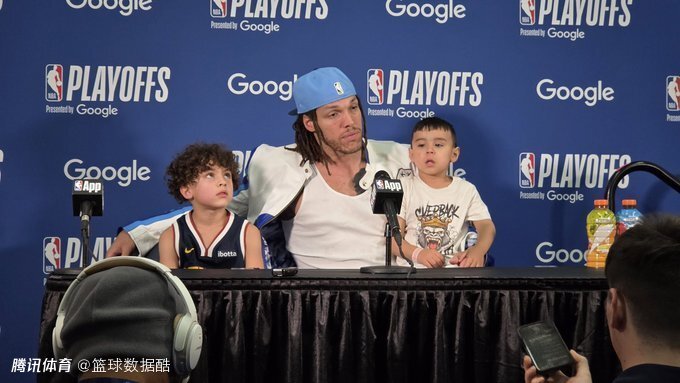 2025-05-07 08:30西部半决赛G1,赛后新闻发布会,阿隆-戈登带着两个男孩到场。当戈登坐在台前接受记者采访,两个男孩一左一右安静陪在他身边,美记者用相机镜头记录下了这温馨的一幕。