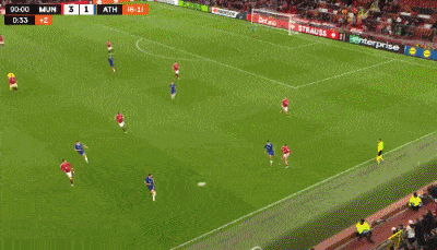 补时最后时刻,芒特超远距离吊射空门得手,曼联3-1领先,总比分7-1毕巴。