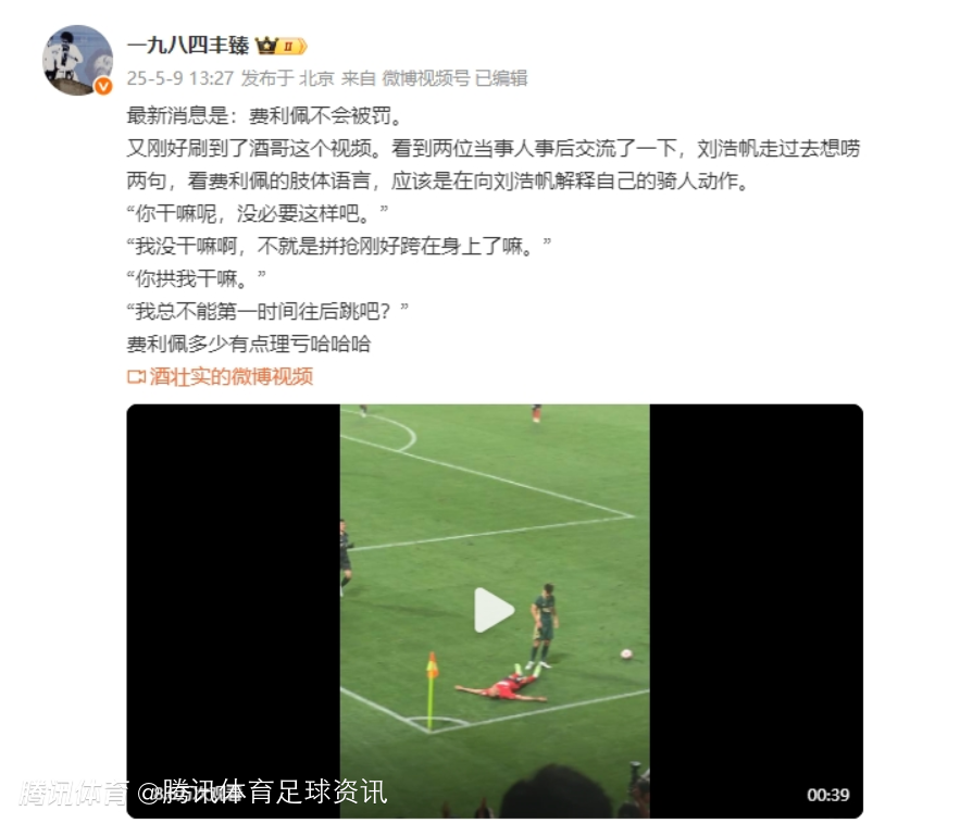 而刚刚,据媒体人丰臻消息,最新消息是费利佩不会被处罚。