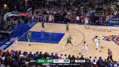 次节比赛,科内特和佩恩先后得手,罗宾逊两罚中一,麦克布莱德投篮得手。随后科内特两罚全中,布朗和霍福德连续得手,普理查德命中三分,绿军一波9-0拉开到22分。唐斯打成2+1,哈特投篮命中,布伦森打成2+1,尼克斯队一波8-2缩小到16分。塔图姆和普理查德连续命中三分稳住局面,哈特两罚全中,布朗和唐斯先后得手。布伦森和塔图姆先后命中三分,哈特再次两罚全中后,霍福德命中三分,塔图姆上篮得手,哈特和布朗先后得手,唐斯篮下得手后,布朗命中三分,然后造成犯规两罚中一,凯尔特人队71-46领先尼克斯25分结束上半场比赛。