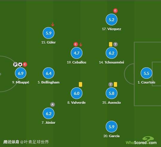 仅仅踢了半场,塞巴略斯就被换下,whoscored给塞巴略斯打出4.7分的超低分;失误导致丢球的巴斯克斯,半场也只有5.2分的超低分,如同灾难。