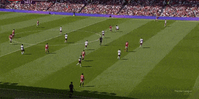 第26分钟,万-比萨卡直塞,库杜斯禁区内得球小角度射门,门前绍切克将球碰进球门,西汉姆客场1-0领先曼联。