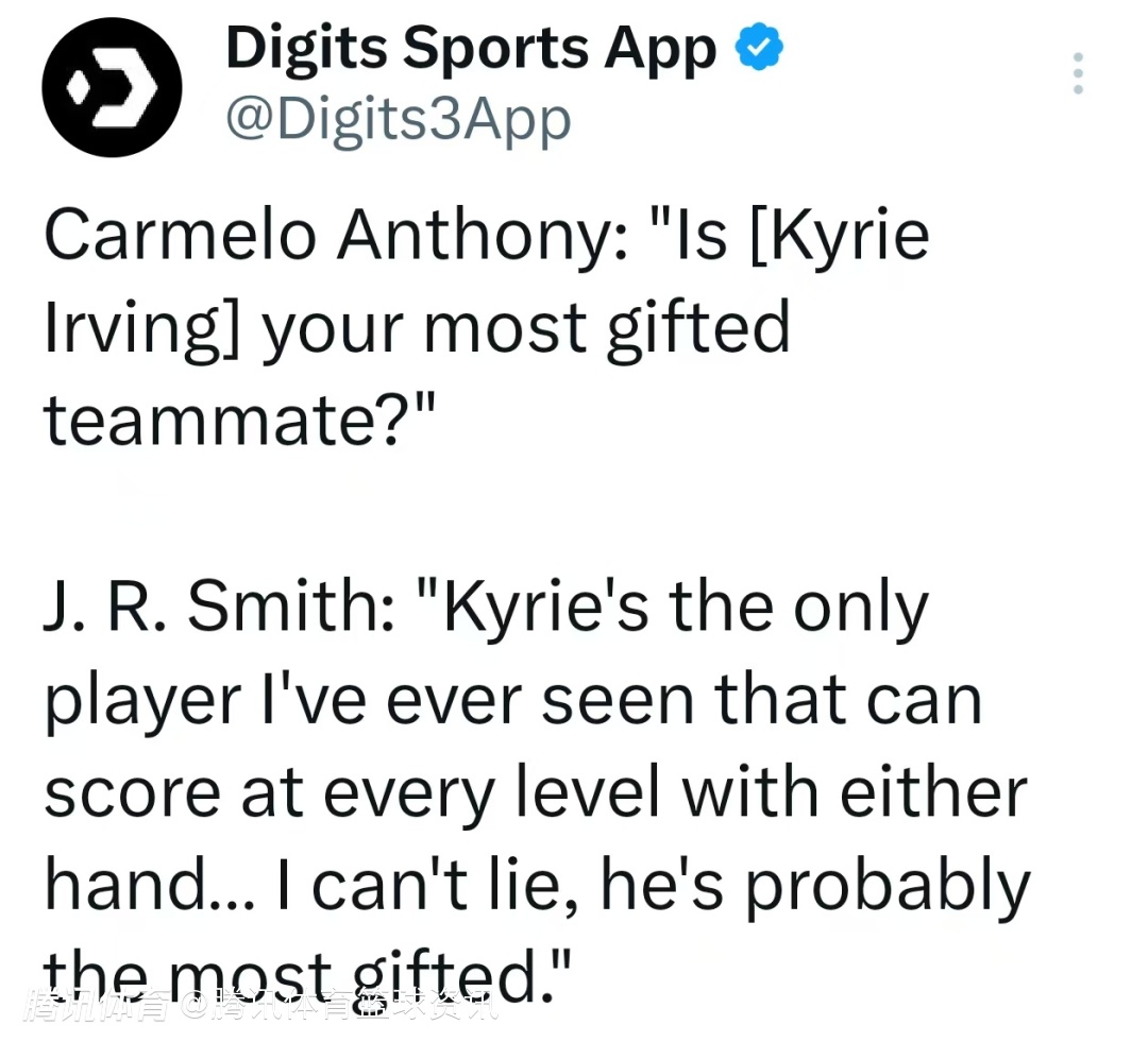 JR-史密斯回答道:“欧文是我见过的唯一一个能用双手在任何位置得分的球员,我得说实话,他可能真的是最有天赋的那个。”