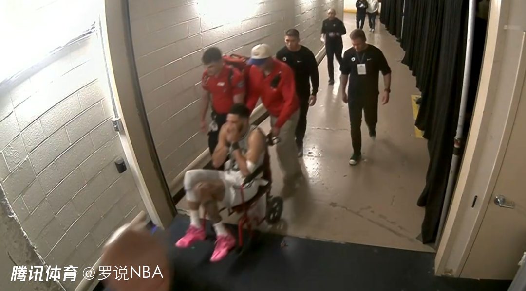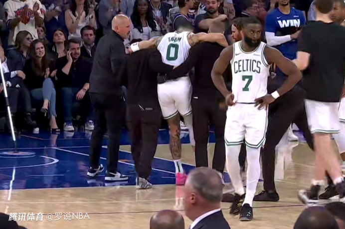 末节最后时刻,塔图姆无对抗受伤,被搀扶出场,随后坐轮椅离开。