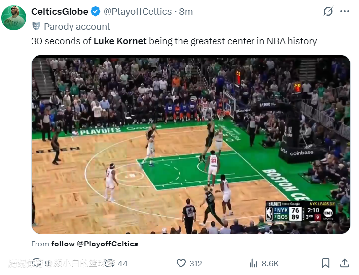凯尔特人媒体:这30秒里科内特就是NBA历史上最伟大的中锋,一防一攻尽显天赋。