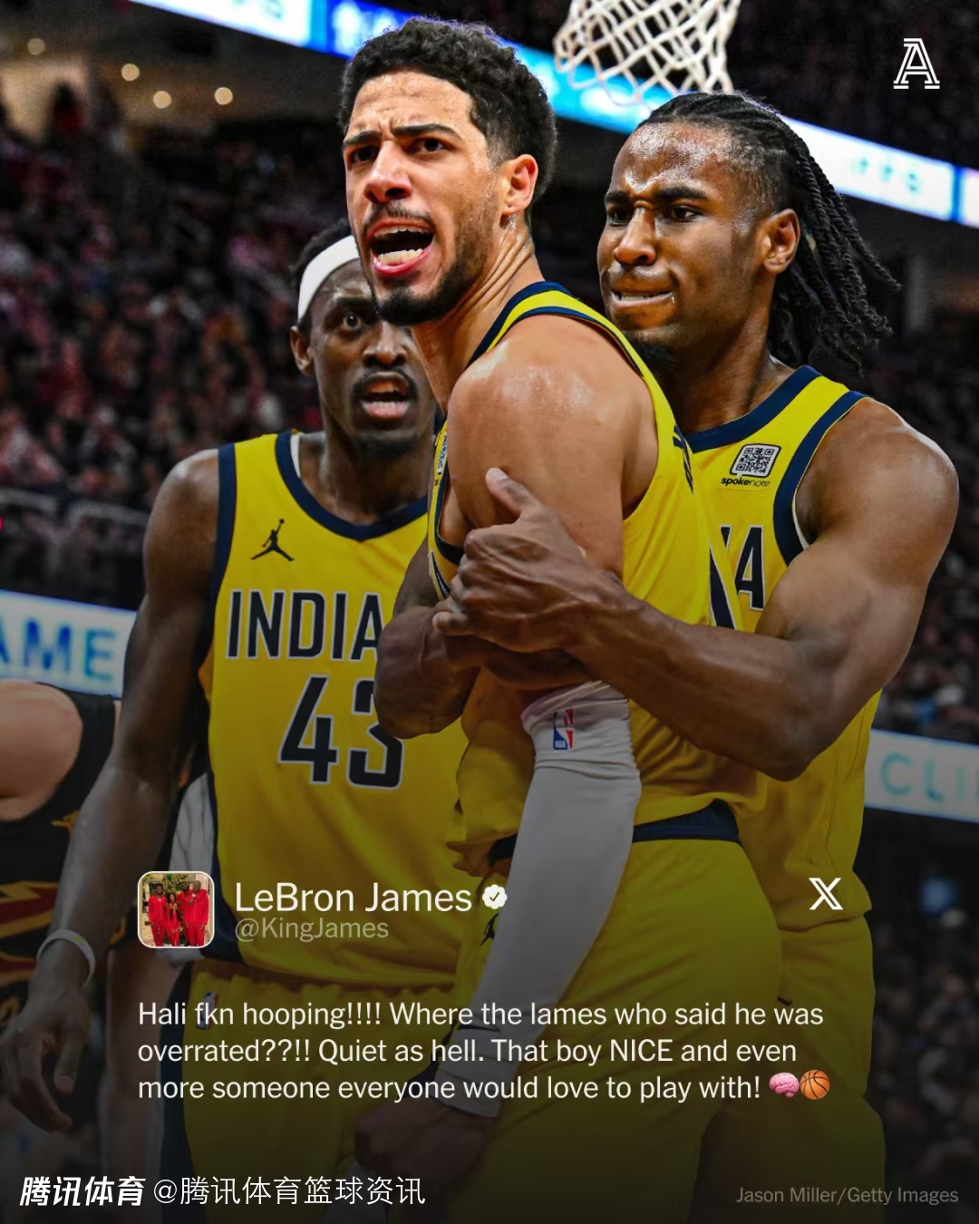 2025-05-15 10:40北京时间5月15日,步行者在东部半决赛中4-1战胜骑士,成功晋级东部决赛。在昨日的比赛中,步行者后卫哈利伯顿表现出色,全场15中10,三分10中6得到31分6篮板8助攻1抢断。湖人球星詹姆斯在比赛期间通过社交媒体对哈利伯顿的表现给予了高度赞扬。