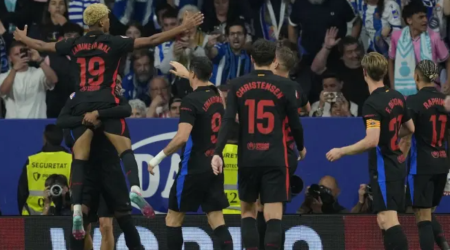 西甲:巴萨德比战2-0提前两轮夺得队史第28冠 亚马尔传射