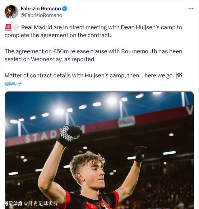 罗马诺透露,皇马和伯恩茅斯就怀森的转会达成一致,皇马将支付5800万欧元的违约金,分3期支付,2027年12月完成全部付款。皇马已经向怀森经纪人发去合同,球员方面同意的话,转会就将完成。在社交平台上,怀森本人“盖章”,点赞了罗马诺的消息。