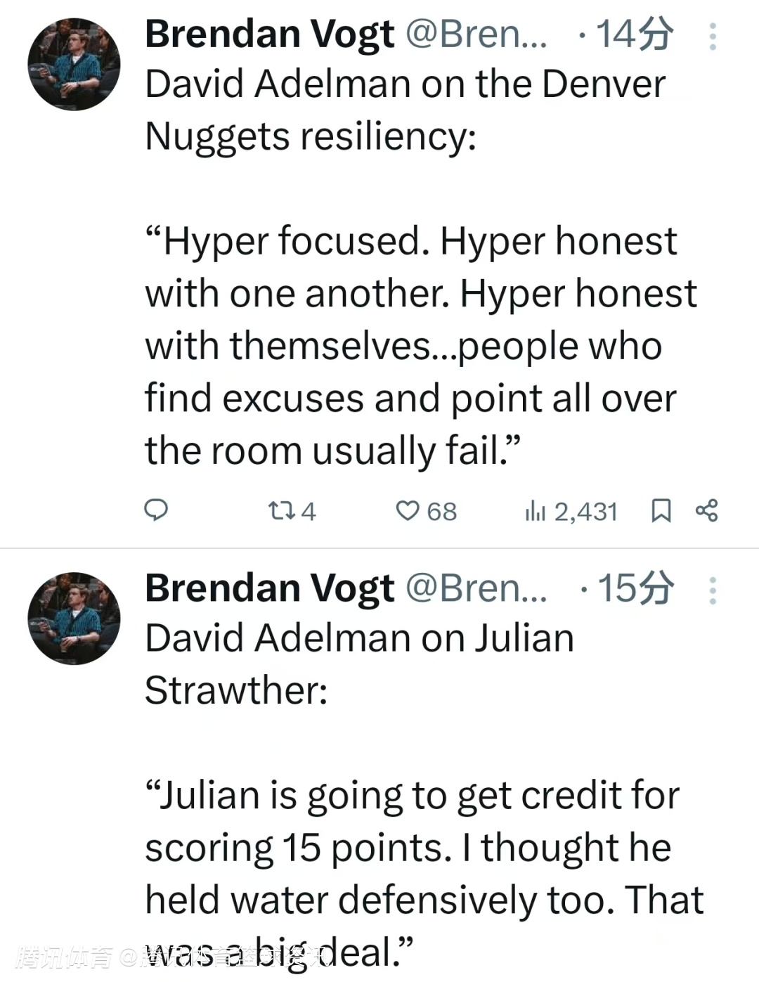 阿德尔曼:斯特劳瑟攻防两端都值得称赞 找借口推卸责任的人通常都会失败