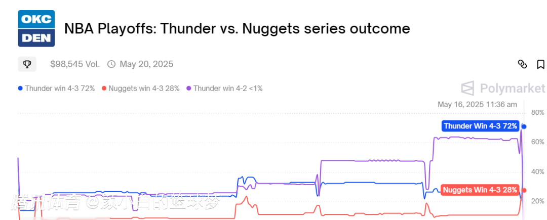 从数据媒体的概率来看,雷霆抢七晋级概率72%,而掘金只有28%,那么SGA就是MVP?