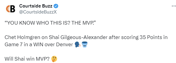 霍姆格伦:亚历山大就是MVP 赢球因给掘金持续施加高强度防守