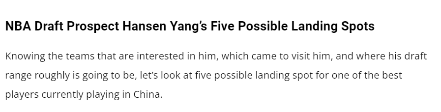 美媒分析杨瀚森五大潜在下家:火箭居首篮网第二 湖人马刺也上榜