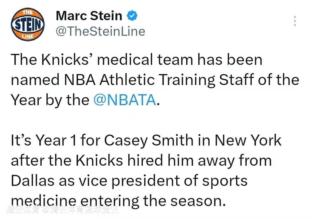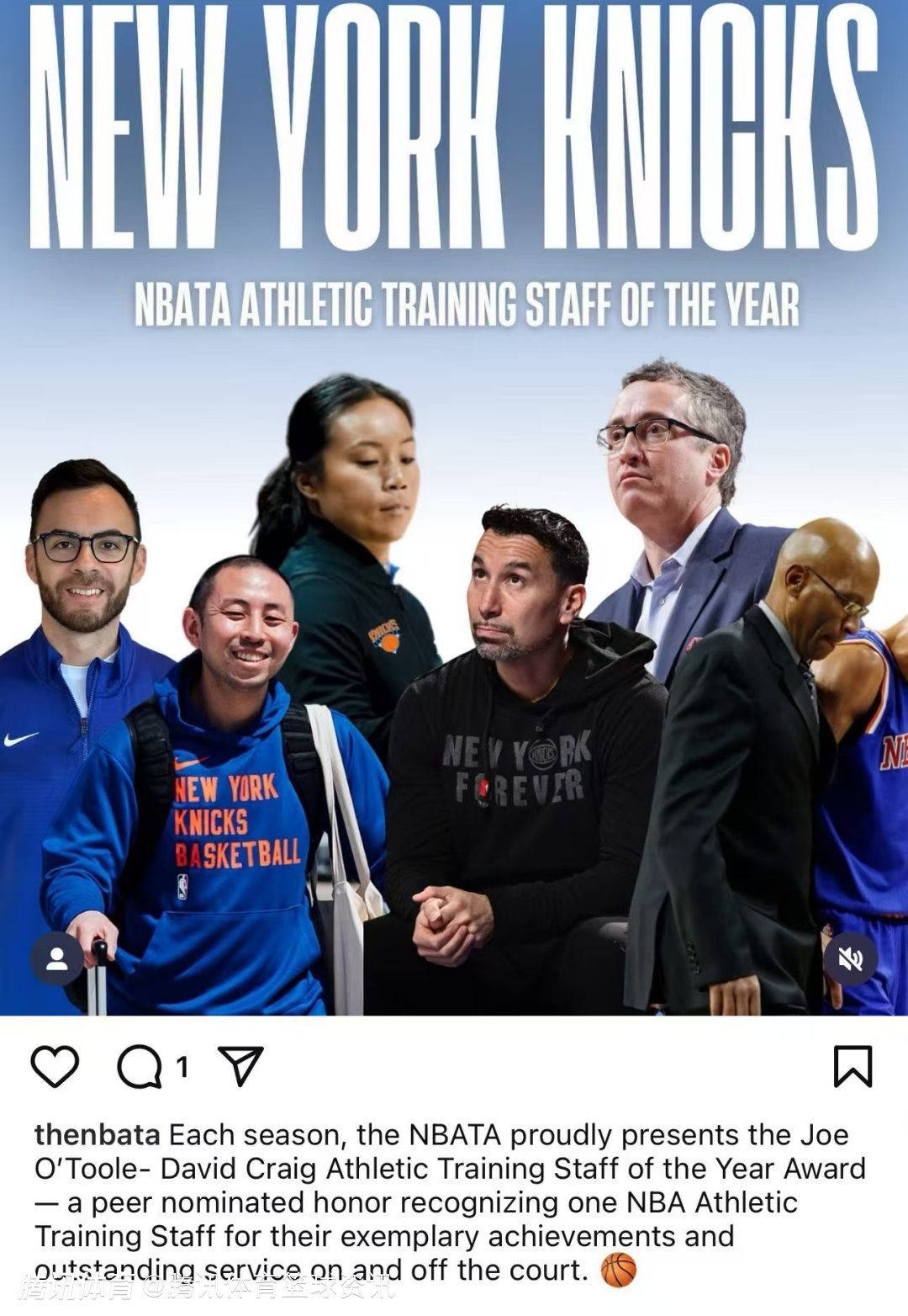 年度NBA运动训练团队!尼克斯获奖得谢独行侠:运动医学副总裁来自达拉斯
