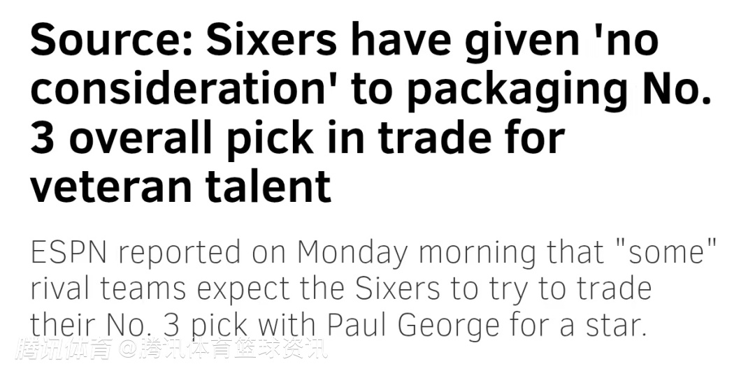 专注补强年轻球员!费城媒体辟谣:76人无意打包探花签+乔治换杜兰特