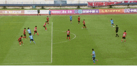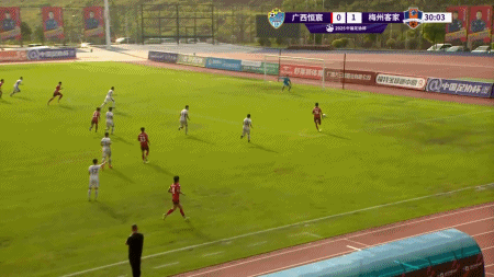 易边再战,第73分钟,高翊轩远射被扑,黄雍海补射入网,广西恒宸2-1反超梅州客家。