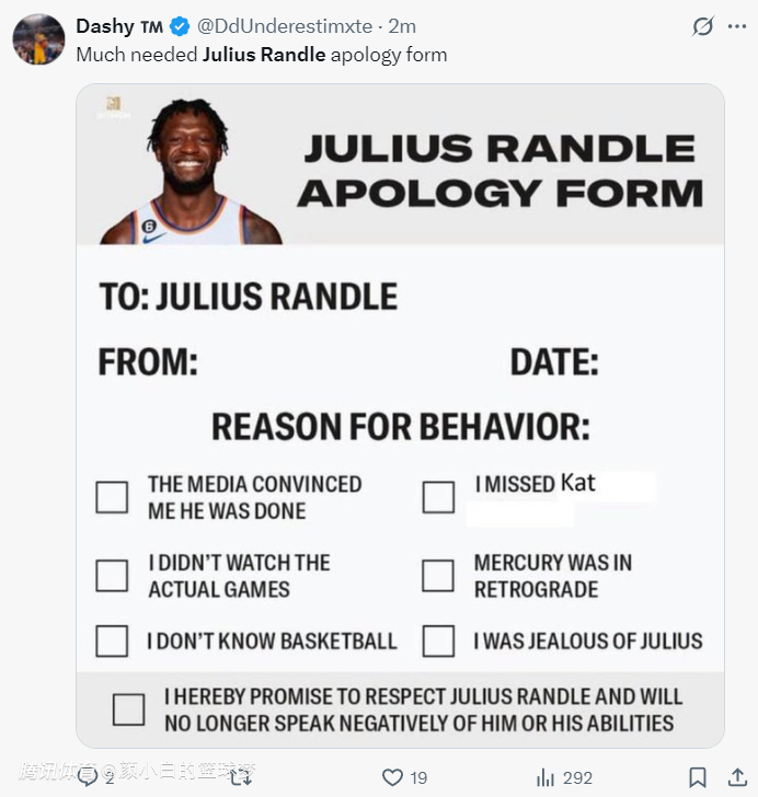 森林狼媒体:兰德尔需要很多道歉信。