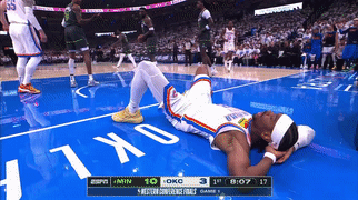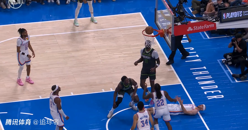 首节最后时刻,爱德华兹强硬突破造犯规,但落地时意外崴脚,所幸伤势无大碍,继续留在场上比赛,首节打完森林狼23-20领先雷霆3分。