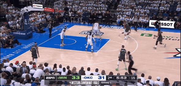 首节比赛,森林狼一上来就依靠着麦克丹尼尔斯和爱德华兹的连续三分,反客为主打出8-0的开局。亚历山大持续冲筐造犯规为雷霆找回场子,兰德尔遭到对手密不透风的内线联防没能取得有效出手,但雷霆的运动战进球表现同样糟糕,这给到森林狼持续占据场上主动权的机会,兰德尔回头抓住机会连续飙进三分,森林狼选择不和对手硬刚内线,通过本场比赛火热的外线手感,在首节取得3分领先优势。