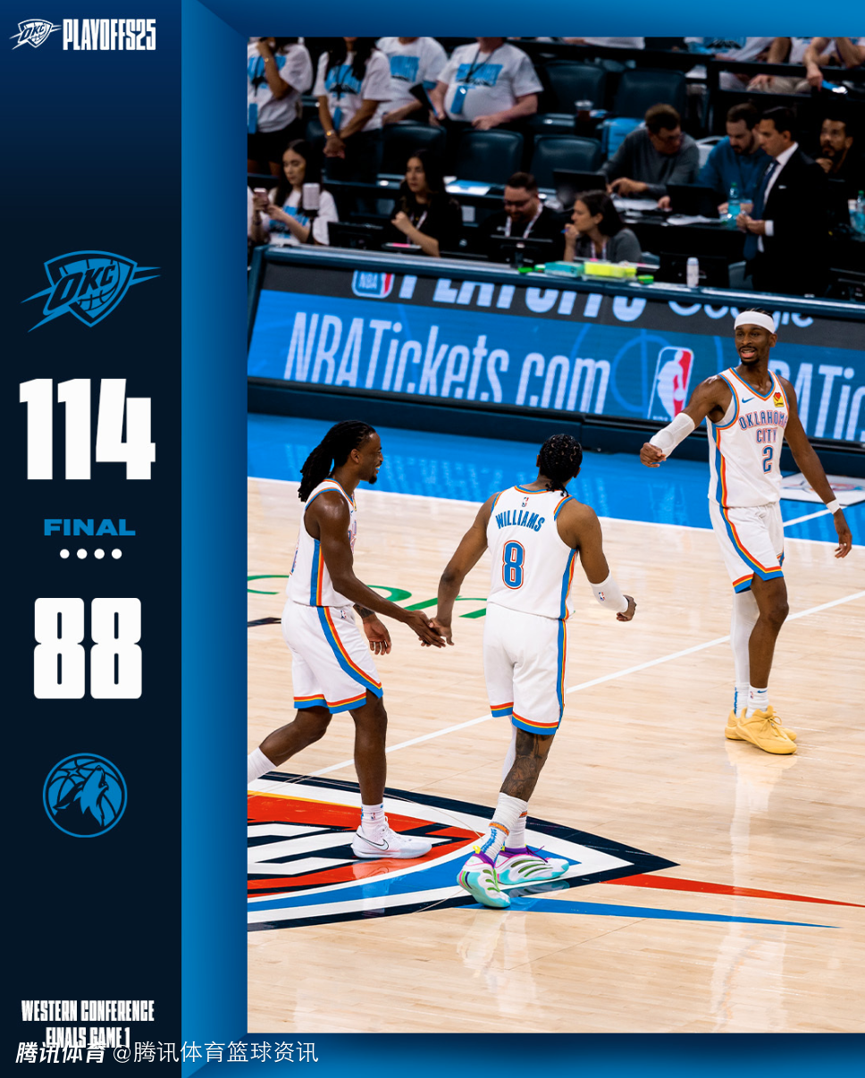 2025-05-21 11:40北京时间5月21日,NBA季后赛西决G1,雷霆主场以114-88大胜森林狼,总比分1-0领先。