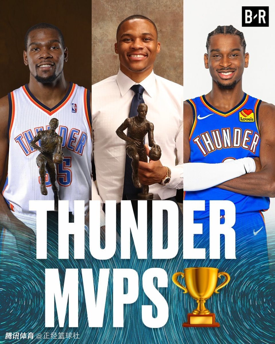 需要说明的是,亚历山大成为雷霆队史第3位夺得MVP的球员,此前雷霆队还有杜兰特、威斯布鲁克获得过常规赛MVP奖项。据统计,雷霆在过去的12年间拿到了3个(不同的)MVP,成为NBA历史首支球队。