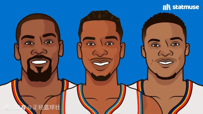 对此,著名媒体StatMuse更新社交媒体,晒出雷霆队史三位MVP当季的数据统计与球迷分享,并且提出了一个问题:这三位MVP谁最强呢?