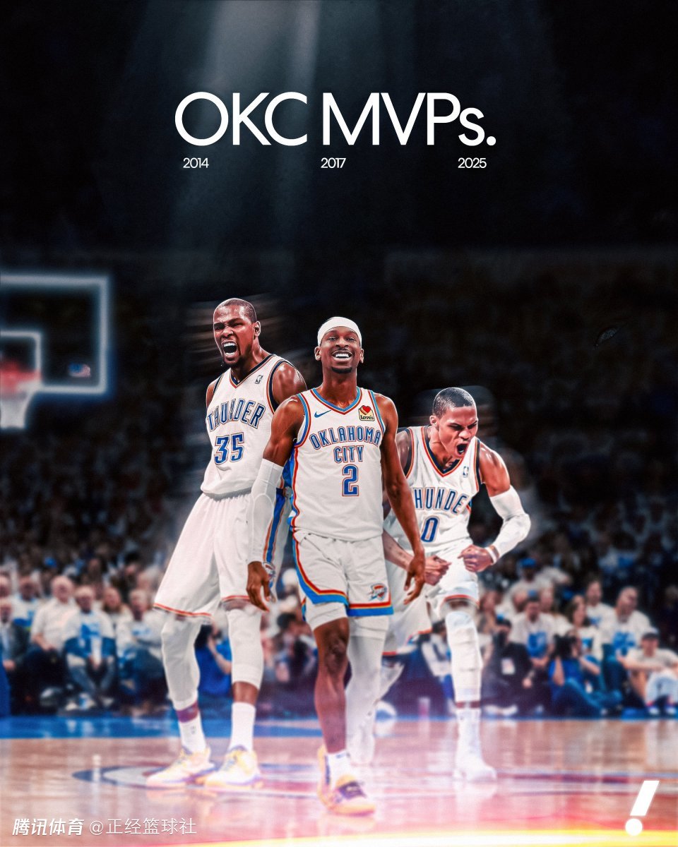 需要说明的是,在夺得MVP的赛季中,杜兰特和威斯布鲁克都未能带队夺冠,杜兰特带领雷霆队在2014年止步西决,威斯布鲁克带领雷霆队在2017年止步首轮。如今亚历山大带领雷霆队在西决征战,比分暂时为雷霆队1-0森林狼队。