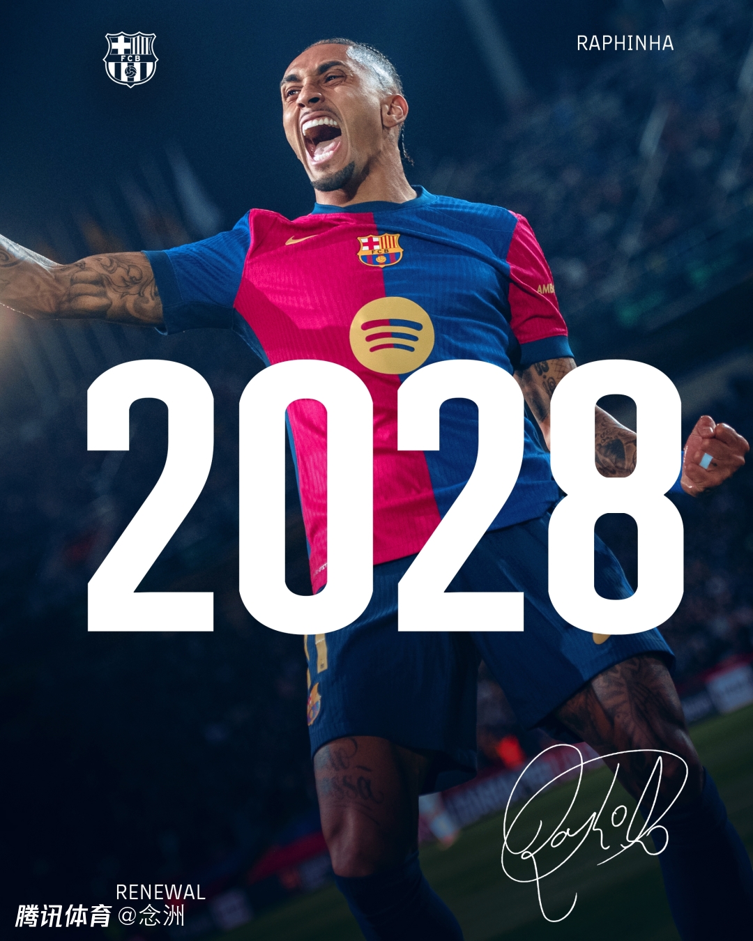 官宣:巴萨续约拉菲尼亚