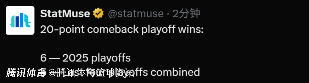 尼克斯在单赛季季后赛中完成3次20+的逆转分数,是1998年以来全联盟最多,另外这也是他们自2000年以来,拿到的首场东决胜利。而20分的逆转获胜,在今年季后赛已经出现了6次,但过去4年季后赛合计才只出现了5次而已。