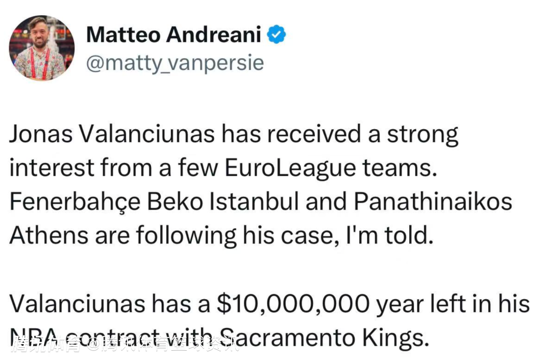 2025-05-26 14:10北京时间5月26日,据欧洲记者Matteo Andreani报道,瓦兰丘纳斯已经受到多支欧冠联赛球队的浓厚兴趣,包括费内巴切和帕纳辛纳科斯正在密切关注他的情况。
