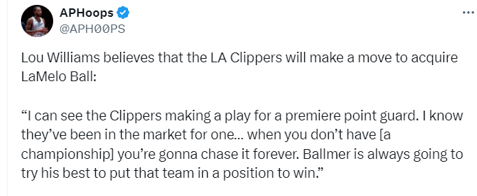 路威还表示,他相信快船老板鲍尔默会升级争冠阵容。