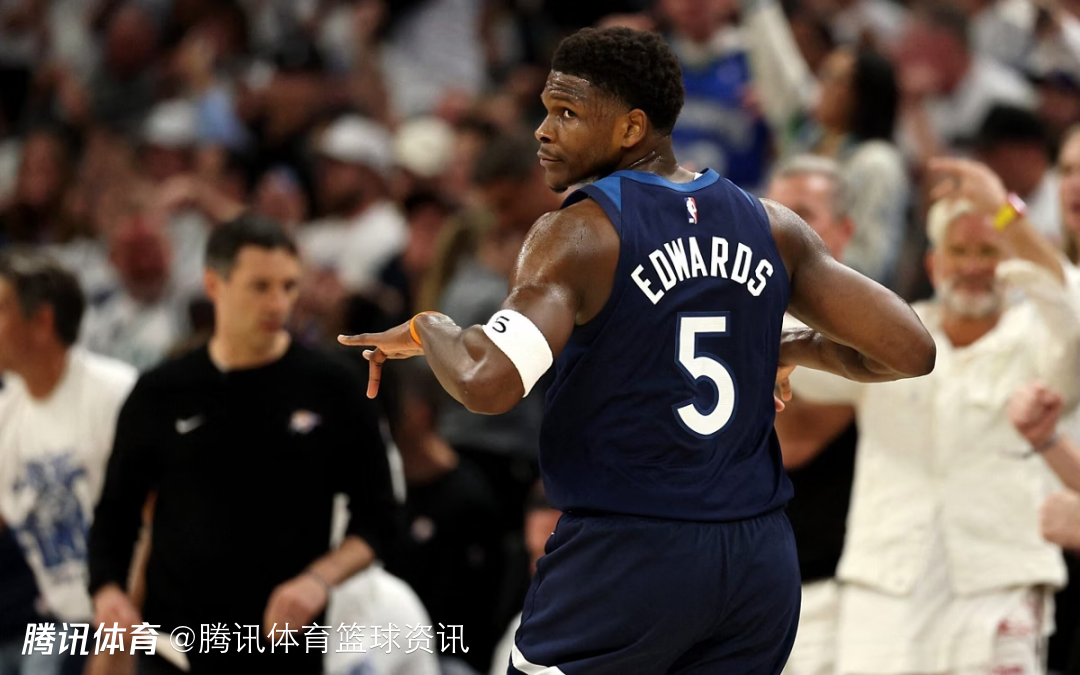 在G3比赛中,爱德华兹带领球队以143-101大胜雷霆,将系列赛大比分扳成1-2。当场比赛他贡献30分9篮板6助攻2抢断,成为NBA季后赛历史上在24岁前砍下30+次数排名第5的球员,前面4位分别是詹姆斯、科比、杜兰特和东契奇。