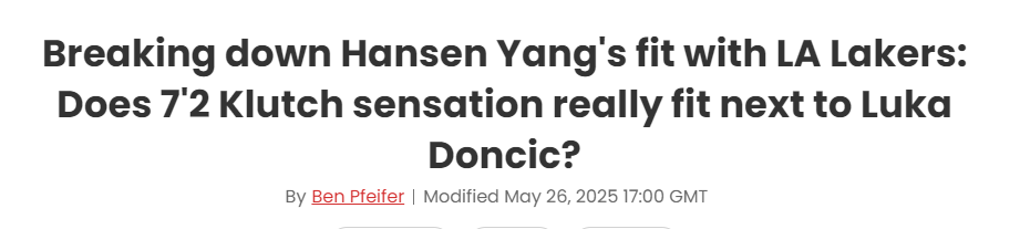 2025-05-27 06:50北京时间5月27日,选秀专家Ben Pfeifer撰文谈到中国球员杨瀚森,讨论他与湖人的适配度话题。以下是Ben的观点——