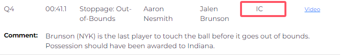 比赛还剩41.1秒尼克斯100-98领先2分,布伦森突破上篮时球出界,裁判把球权判给尼克斯;裁判报告显示,布伦森是最后一个触球的球员,球权应该判给步行者,这是一次重大错判,尼克斯获利,步行者吃亏。