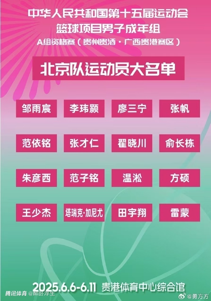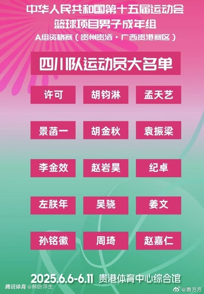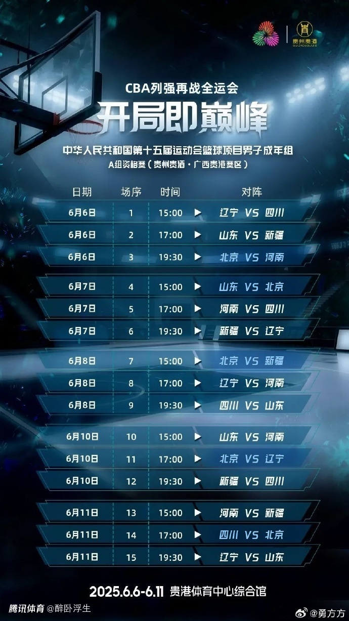2025-05-28 22:00北京时间5月28日,2025年第15届全运男篮成年组预赛A组资格赛赛程出炉,揭幕战将是6月6日15点辽宁对决四川的焦点大战,辽宁由赵继伟、韩德君、付豪与原帅领衔,四川则是拥有周琦、胡金秋与孙铭徽等“雇佣兵”。至于6月11日北京对决四川,周琦将代表四川对决现在的东家北京自然是极具看点。