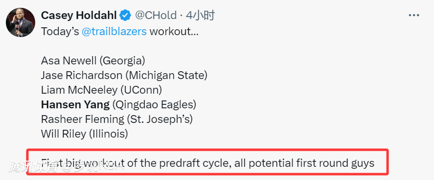 开拓者多位队记报道了球队的首日试训名单,并表示名单上的球员都是潜在的首轮秀。