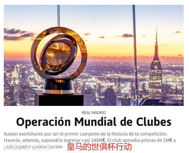 世俱杯设有丰厚的奖金,《阿斯报》进行揭秘(以美元计价):