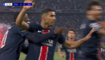 进球之后,巴黎圣日耳曼球迷狂欢庆祝!不过,阿什拉夫拒绝庆祝,他举起双手,示意自己“无意冒犯”。