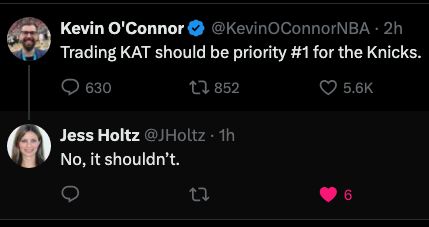 2025-06-01 13:00北京时间6月1日,NBA东部决赛G6打响,步行者队主场125-108大胜尼克斯队,总比分4-2淘汰对手,时隔25年之后再次打入总决赛。赛后,有纽约记者称尼克斯队私下对唐斯的防守习惯不满,NBA记者Kevin O'Connor更是直言,尼克斯队应该在休赛期交易唐斯。唐斯的经纪人Jess Holtz随后更新个人推特,对相关报道进行了回应。