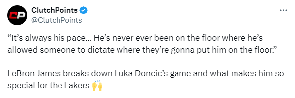詹姆斯:东契奇从不被对手节奏所左右 接触篮球源自乔丹等人启发