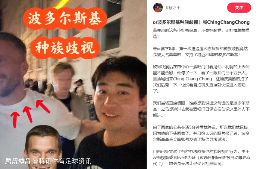2025-06-02 07:40北京时间6月2日,此前博主“K球之王”社媒发文,称在德国遭遇波多尔斯基种族歧视。