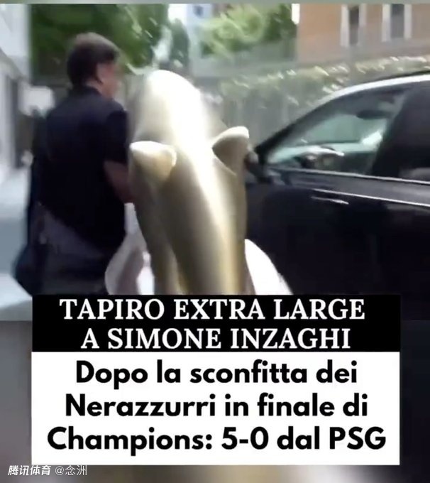 欧冠决赛,国米0-5惨败巴黎圣日耳曼。国米主教练西蒙尼-因扎吉收到意大利国家电视台Striscia La Notizia颁发的“超大金貘奖”,只能自己用肩膀扛着。