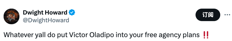 霍华德在线为奥拉迪波找工作:请务必将他纳入你们自由球员计划中