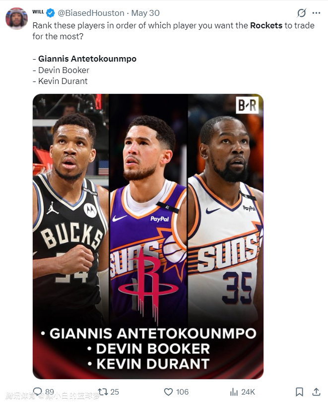 这也符合休媒此前的引援预期,第一顺位的引援是阿德托昆博,第二顺位是布克,最后才是杜兰特。
