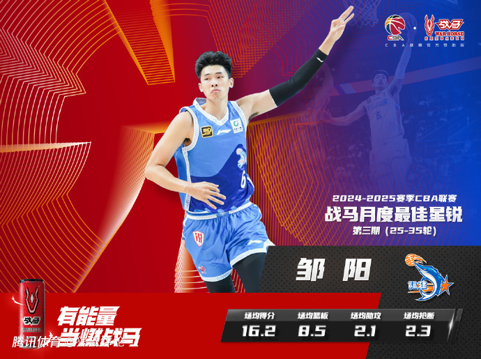 2024-25赛季,邹阳为福建男篮全勤登场46次,场均37.5分钟,能贡献15.6分8.0篮板1.3助攻1.9抢断。虽说他极品辅助的球风很适合现在的外援政策,但在这样的情况下,他的数据依然有一定提高,并生涯首次入选全明星、入选赛季最佳阵容二阵,这一定是他努力后的结果。