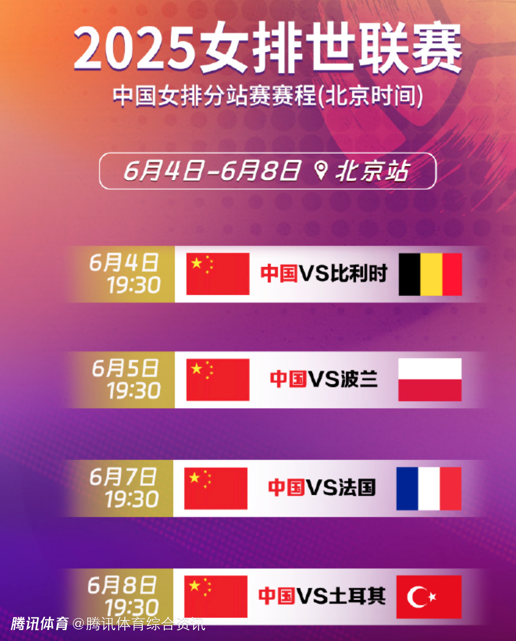 6月4日—8日,2025世界女排联赛北京站将在国家体育馆举行。中国女排赛程如下: