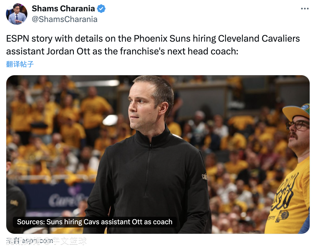 2025-06-05 05:30北京时间6月5日,据名记Shams报道,太阳将会从骑士教练团中挖角助理教练乔丹-奥特,奥特将出任太阳新帅一职,随后Shams通过长文揭秘太阳选择奥特的原因,同时透露太阳休赛期的下一步计划。