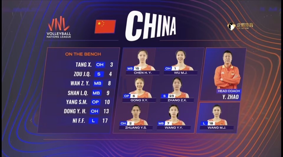 世联赛中国女排VS波兰首发阵容 队长龚翔宇领衔3名世界冠军压阵