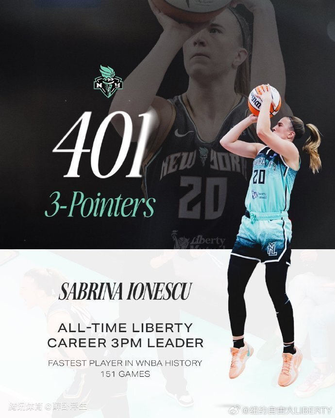 此外,“女库里”约内斯库13分7助攻2记三分,生涯命中401记三分,超越罗宾逊的400记三分,加冕纽约自由人队史三分王。约内斯库仅用151场比赛就命中400记三分,超越陶乐西的158场纪录,创造全新的WNBA历史命中400记三分历史最快纪录。