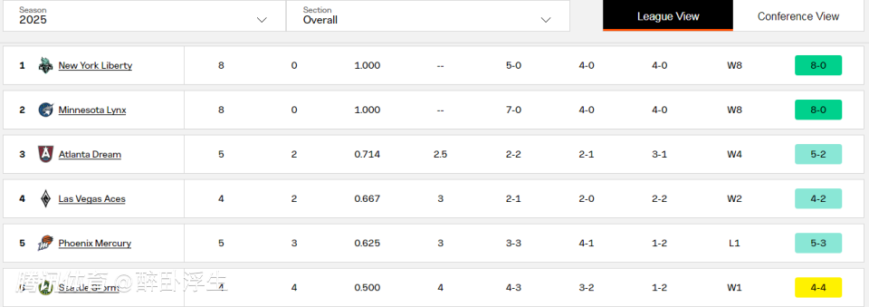 纽约自由人豪取8战全胜战绩,反超同样是8胜0负的明尼苏达山猫,重新登上WNBA联盟第一的宝座。