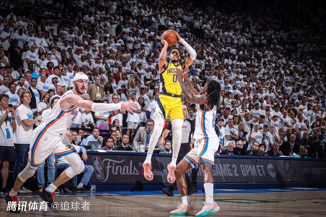总决赛第一场,面对雷霆的高压防守,步行者全队出现多达25次失误,可即使如此他们仍旧顽强抵抗,在末节落后15分的情况下完成大逆转,在比赛还剩0.3秒时,哈利伯顿中投绝杀救主,这是步行者本场比赛第一次领先雷霆;据统计,自1971年以来,这是总决赛中最晚一支球队首次取得领先。